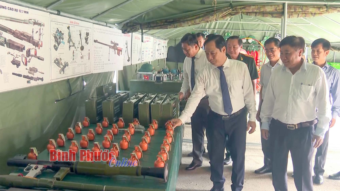 Các đại biểu tham quan khu vực trưng bày vũ khí, thiết bị kỹ thuật quân sự