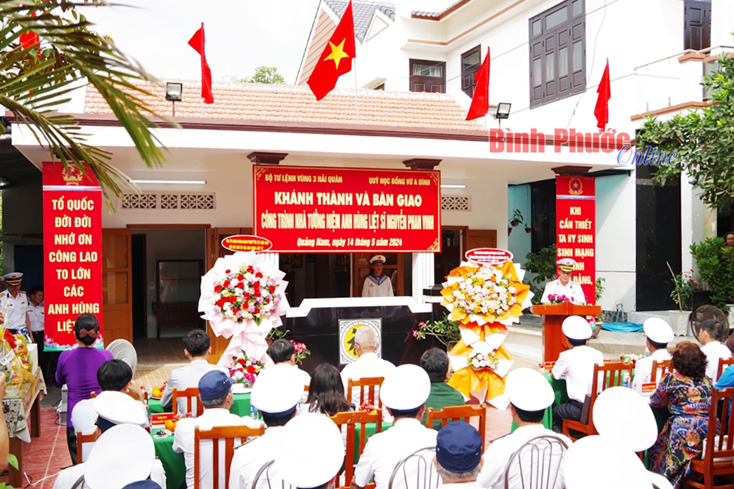 Tại lễ khánh thành, Bộ Tư lệnh Vùng 3 Hải quân và các tổ chức, cá nhân đã trao tặng gia đình anh hùng liệt sĩ Nguyễn Phan Vinh nhiều phần quà có giá trị.
