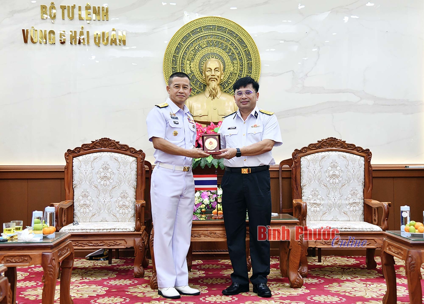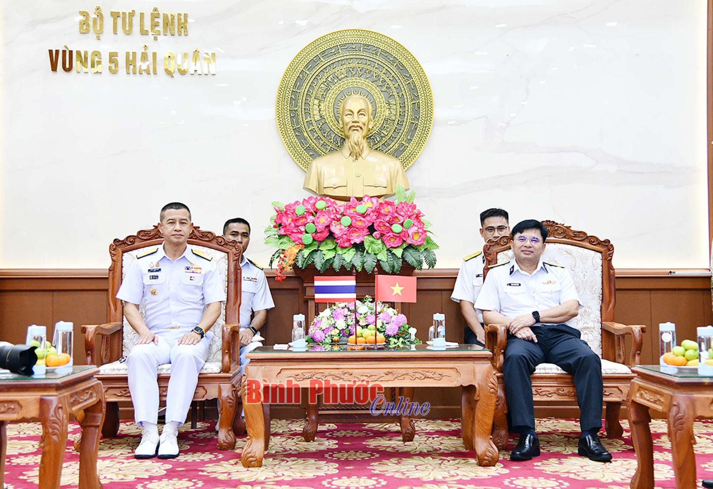 Phó Đô đốc Arpa Chapanont và đoàn công tác Hải quân Hoàng gia Thái Lan chào xã giao Bộ Tư lệnh Vùng 5 Hải quân