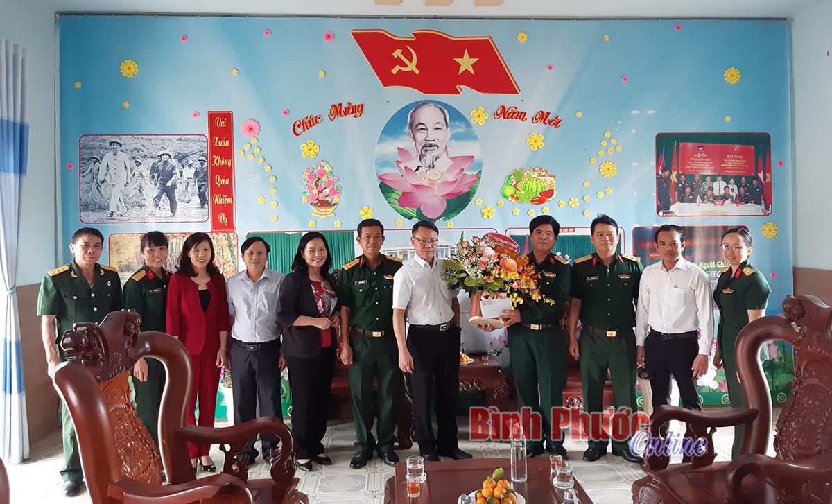 Bí thư Huyện ủy Bù Đốp Dương Thanh Huân cùng đoàn công tác chúc mừng cán bộ, chiến sĩ Ban Chỉ huy quân sự huyện