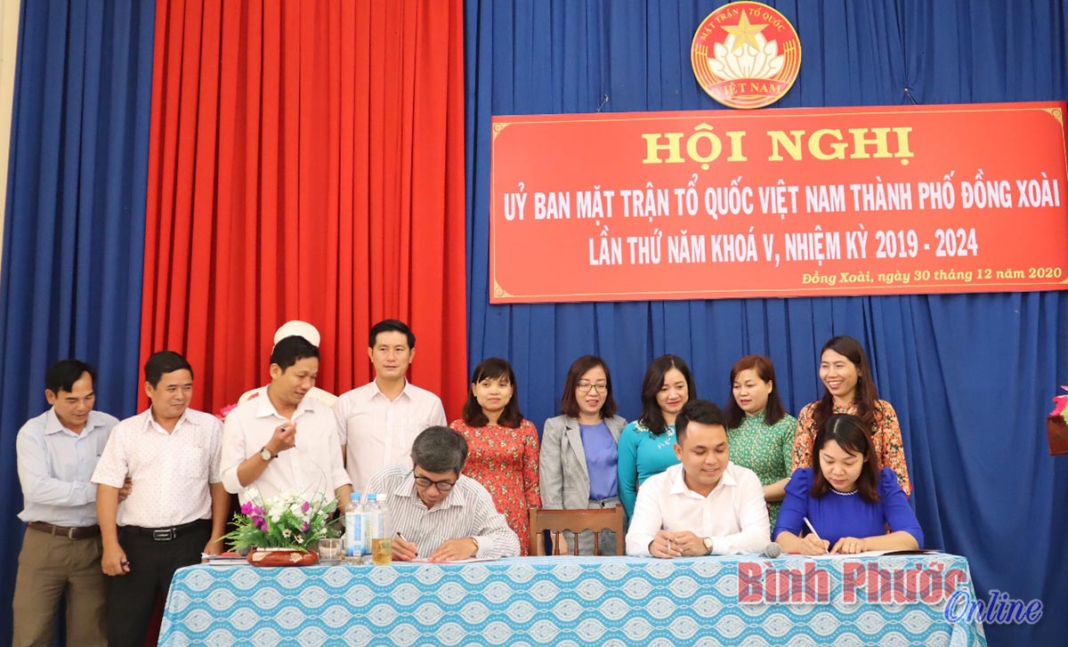 Dịp này, Ủy ban MTTQ Việt Nam thành phố Đồng Xoài đã hiệp thương cử bổ sung ủy viên nhiệm kỳ 2019-2024 và ký kết chương trình phối hợp thống nhất hành động năm 2021.