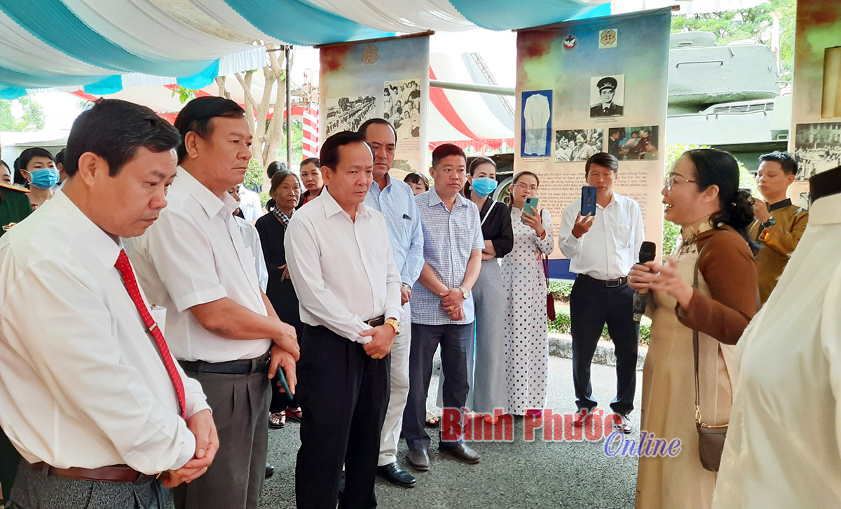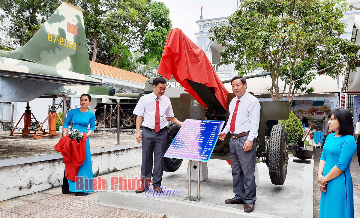 Dịp này, các lãnh đạo, nguyên lãnh đạo thị xã Phước Long cũng đã thực hiện nghi thức mở băng trưng bày 2 hiện vật khẩu pháo 105 mm.