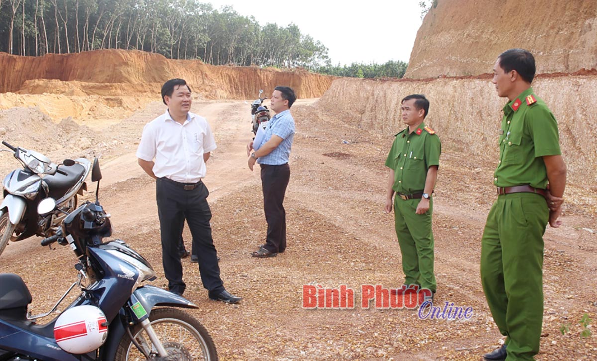 Lãnh đạo UBND huyện Phú Riềng cùng cơ quan chức năng kiểm tra tình hình khai thác tài nguyên đất trên địa bàn