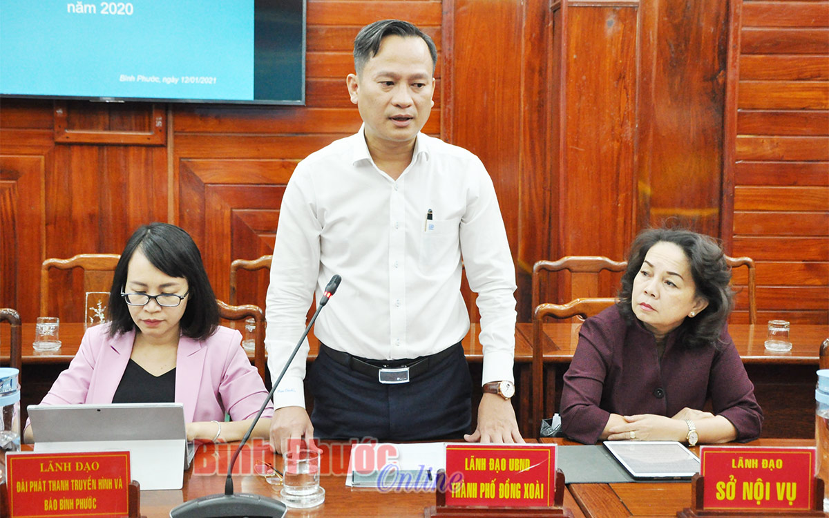 Lãnh đạo thành phố Đồng Xoài phát biểu thảo luận tại cuộc họp