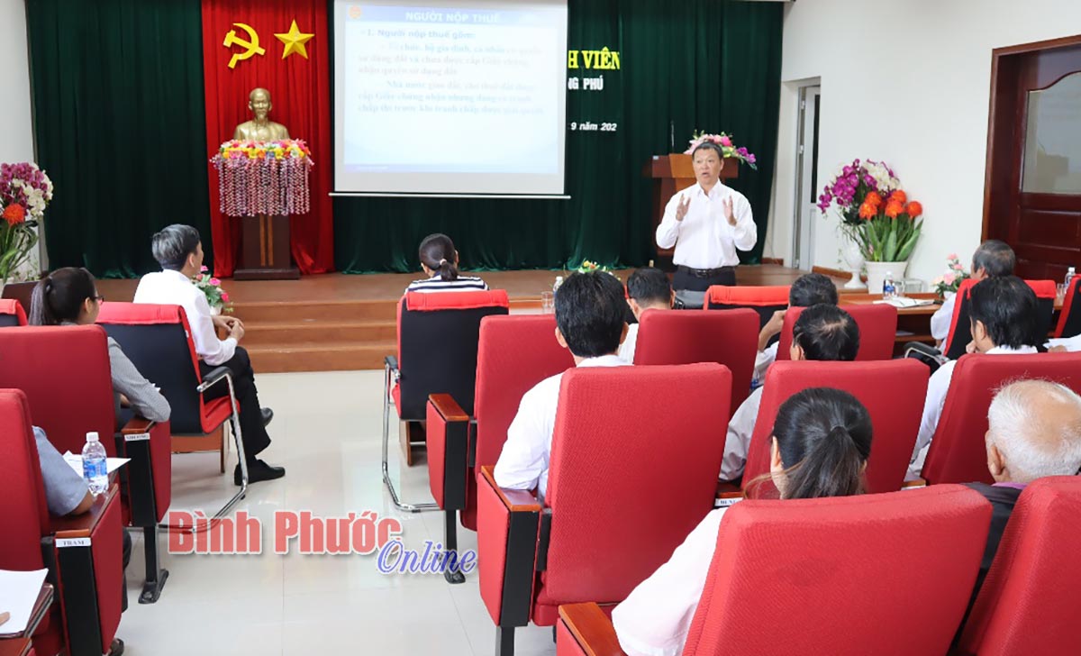 Tại hội nghị, lãnh đạo Chi cục Thuế và các bộ phận nghiệp vụ đã truyền đạt rõ thêm về quy trình kê khai, lập bộ, cách tính, đối tượng miễn, giảm thuế sử dụng đất phi nông nghiệp. Đồng thời, trả lời giải đáp các vướng mắc phát sinh trong quá trình kê khai thu thuế.