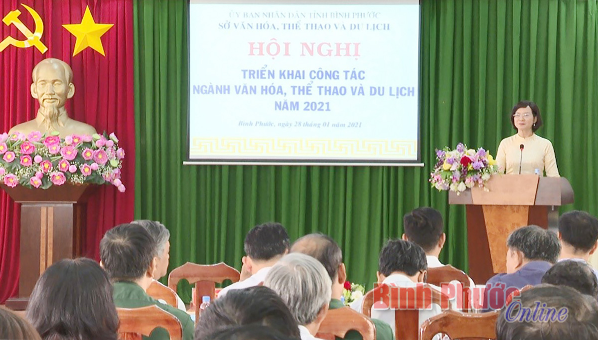 Biểu dương những kết quả ngành văn hóa, thể thao và du lịch tỉnh đạt được trong năm qua, Phó chủ tịch UBND tỉnh Trần Tuyết Minh nhấn mạnh một số nhiệm vụ trọng tâm trong năm 2021: Tăng cường hoạt động văn hóa, thể thao cấp cơ sở; giữ gìn bản sắc văn hóa đồng bào các dân tộc thiểu số ở Bình Phước; tiếp tục nâng cao chất lượng hoạt động nghệ thuật biểu diễn chuyên nghiệp; đẩy mạnh thể thao thành tích cao; xây dựng đội ngũ cán bộ quản lý văn hóa chất lượng; chủ động đề xuất, tham mưu UBND tỉnh xây dựng các chính sách phát triển ngành văn hóa, thể thao, du lịch.