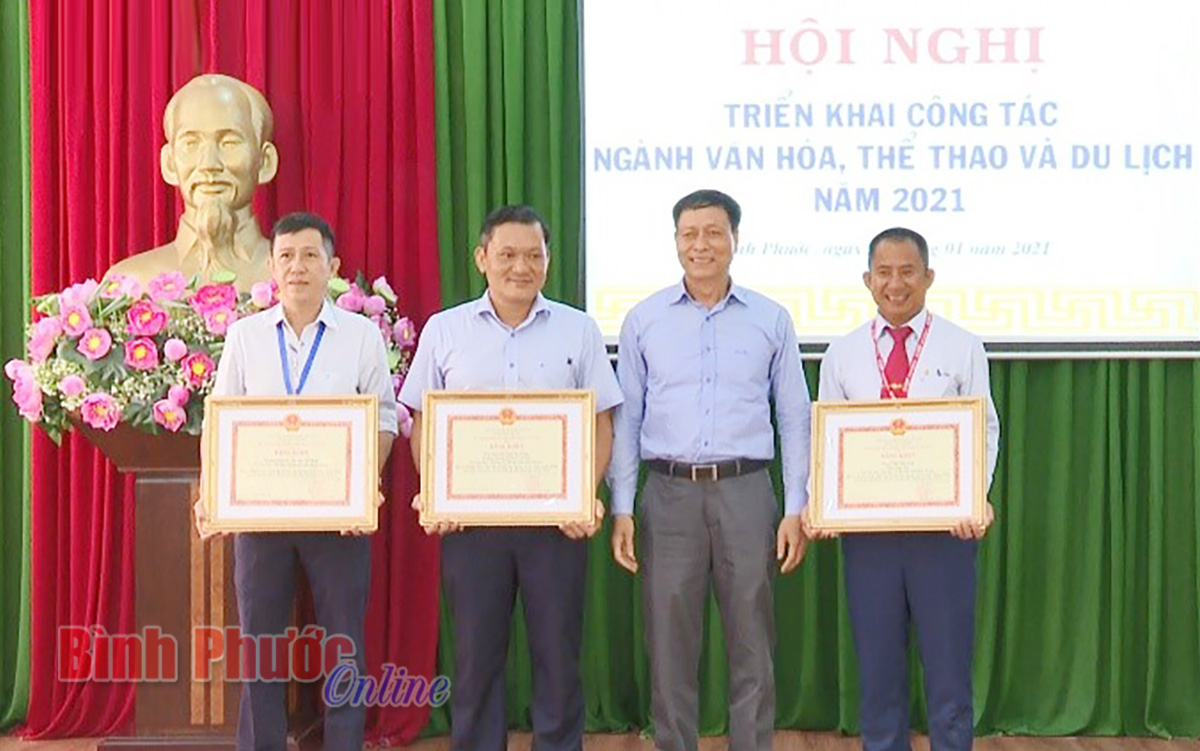 Dịp này, Phòng Văn hóa - Thông tin thị xã Bình Long đã vinh dự được nhận cờ thi đua của Bộ Văn hóa - Thể thao và Du lịch. 7 tập thể, 3 cá nhân có thành tích xuất sắc trong công tác năm 2020; các tập thể, hộ gia đình, cá nhân có thành tích xuất sắc trong phong trào “Toàn dân đoàn kết xây dựng đời sống văn hóa” giai đoạn 2000-2020 được nhận bằng khen của Bộ Văn hóa - Thể thao và Du lịch. Ngoài ra, nhiều tập thể, cá nhân khác cũng được tuyên dương, khen thưởng.