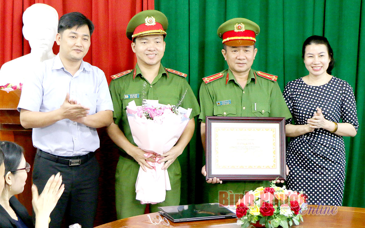 Thừa ủy nhiệm của Chủ tịch Hiệp hội điều Việt Nam (VINACAS), bà Đào Thị Lanh, Chủ tịch Hội nông dân, Chủ tịch Hiệp hội điều tỉnh Bình Phước trao bằng khen cùng số tiền thưởng 20 triệu đồng cho đại diện Phòng Cảnh sát môi trường Công an tỉnh Bình Phước