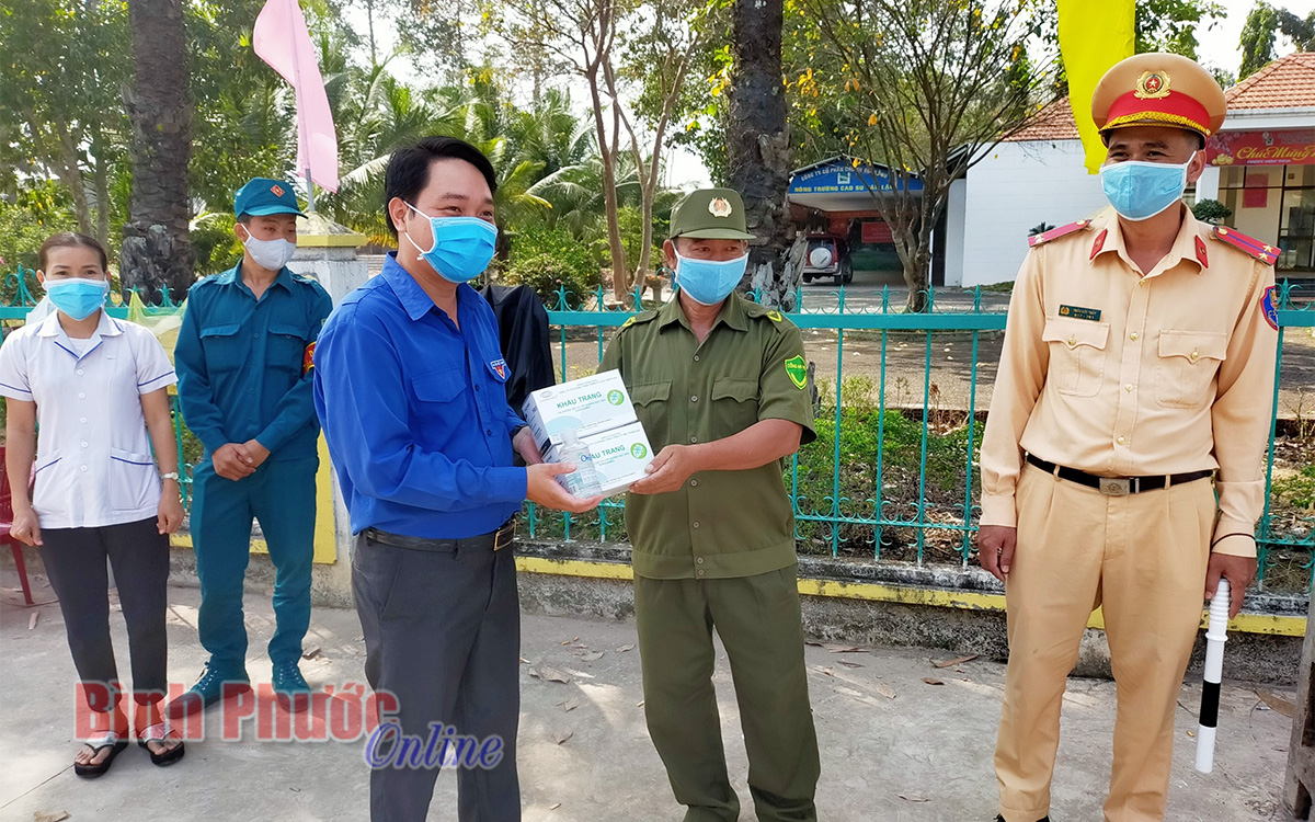 Huyện đoàn Đồng Phú tặng khẩu trang và nước sát khuẩn cho các chốt kiểm soát dịch bệnh