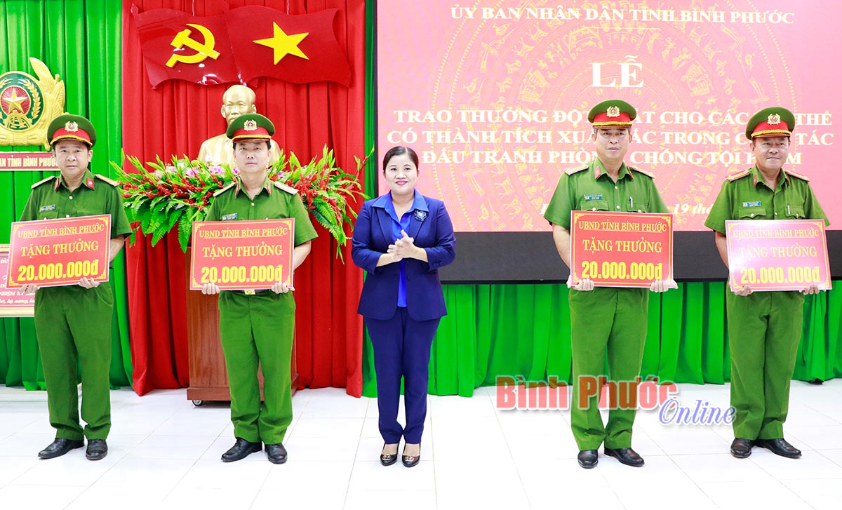 Tại buổi lễ, Chủ tịch UBND tỉnh đã trích từ nguồn Quỹ phòng, chống tội phạm của tỉnh khen thưởng đột xuất 4 tập thể trên, mỗi đơn vị 20 triệu đồng.