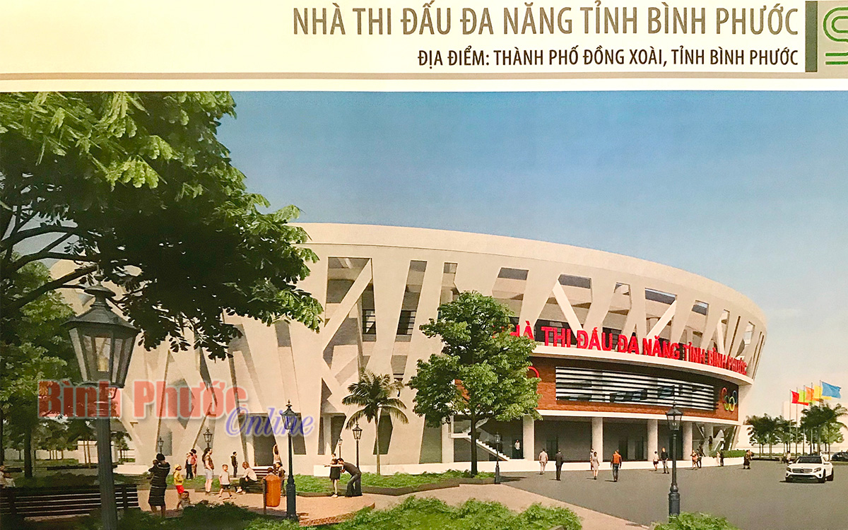 Phối cảnh (mặt trước) Công trình Nhà thi đấu đa năng tỉnh Bình Phước