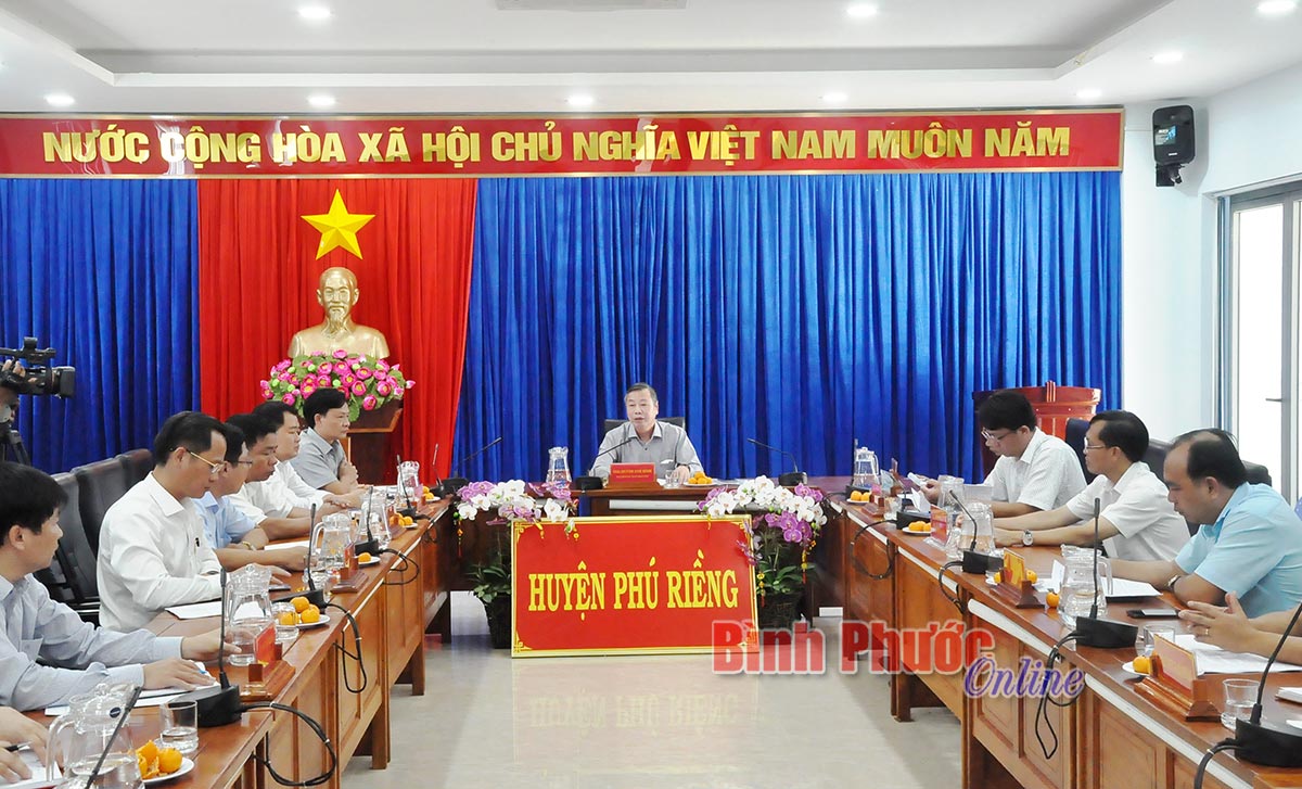 Phó chủ tịch UBND tỉnh Huỳnh Anh Minh và lãnh đạo các đơn vị làm việc tại trung tâm hành chính huyện Phú Riềng
