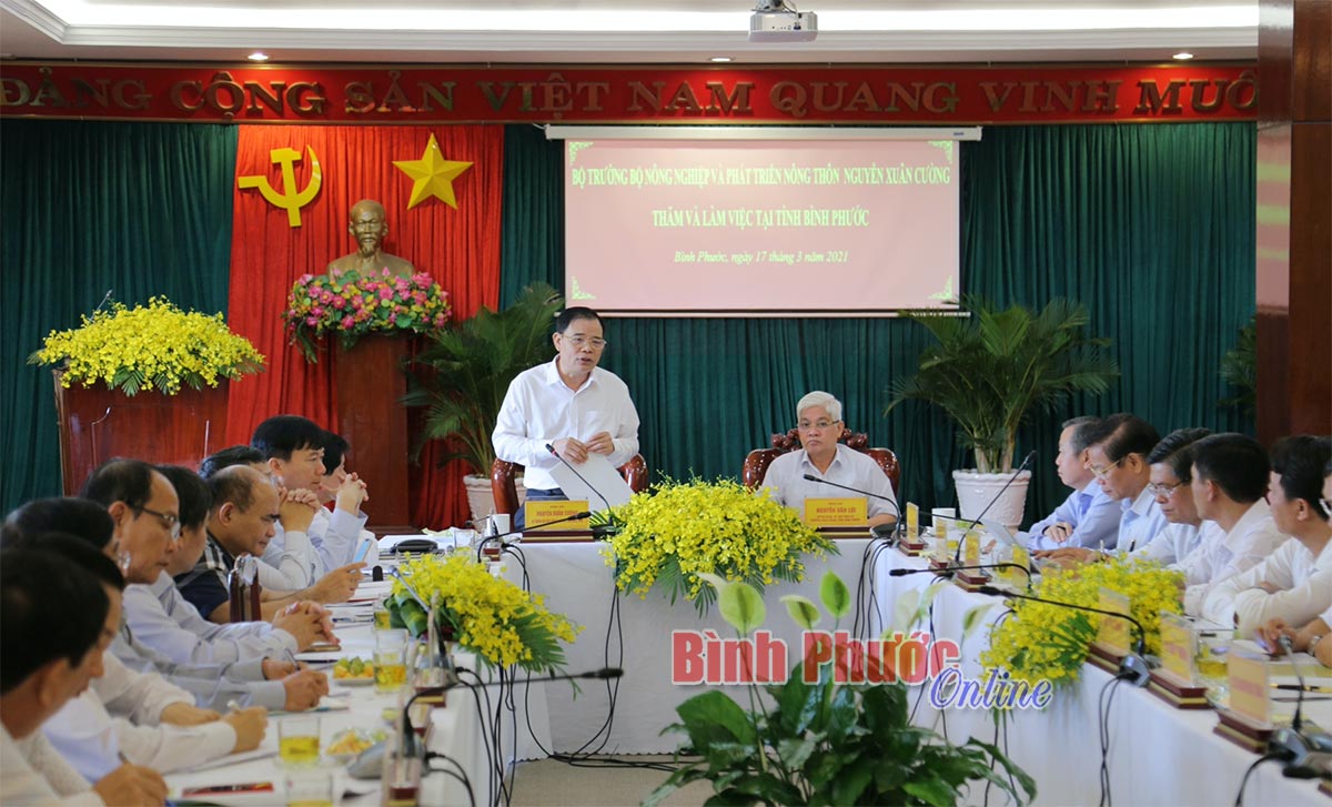 Bộ trưởng cũng yêu cầu các đơn vị của bộ tăng cường hỗ trợ tỉnh thực hiện các đề án để ngành nông nghiệp Bình Phước có thêm nguồn lực phát triển.