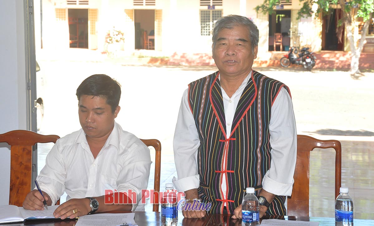 Công tác bình chọn già làng tiêu biểu được xã thực hiện theo đúng Quyết định 24/2017/QĐ-UBND ngày 5-6-2017 của UBND tỉnh. Từ năm 2018 đến nay, xã có 4 già làng tiêu biểu đều là người S’tiêng tại chỗ. Đây là những già làng có uy tín, đóng vai trò quan trọng, là cầu nối giữa Đảng, chính quyền với nhân dân địa phương, đóng góp tích cực trong phong trào xây dựng nông thôn mới…
