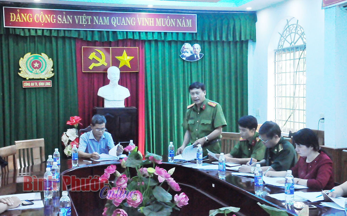 Đại diện Công an thị xã Bình Long báo cáo các nội dung liên quan đến việc chấp hành pháp luật về công tác tạm giữ, tạm giam