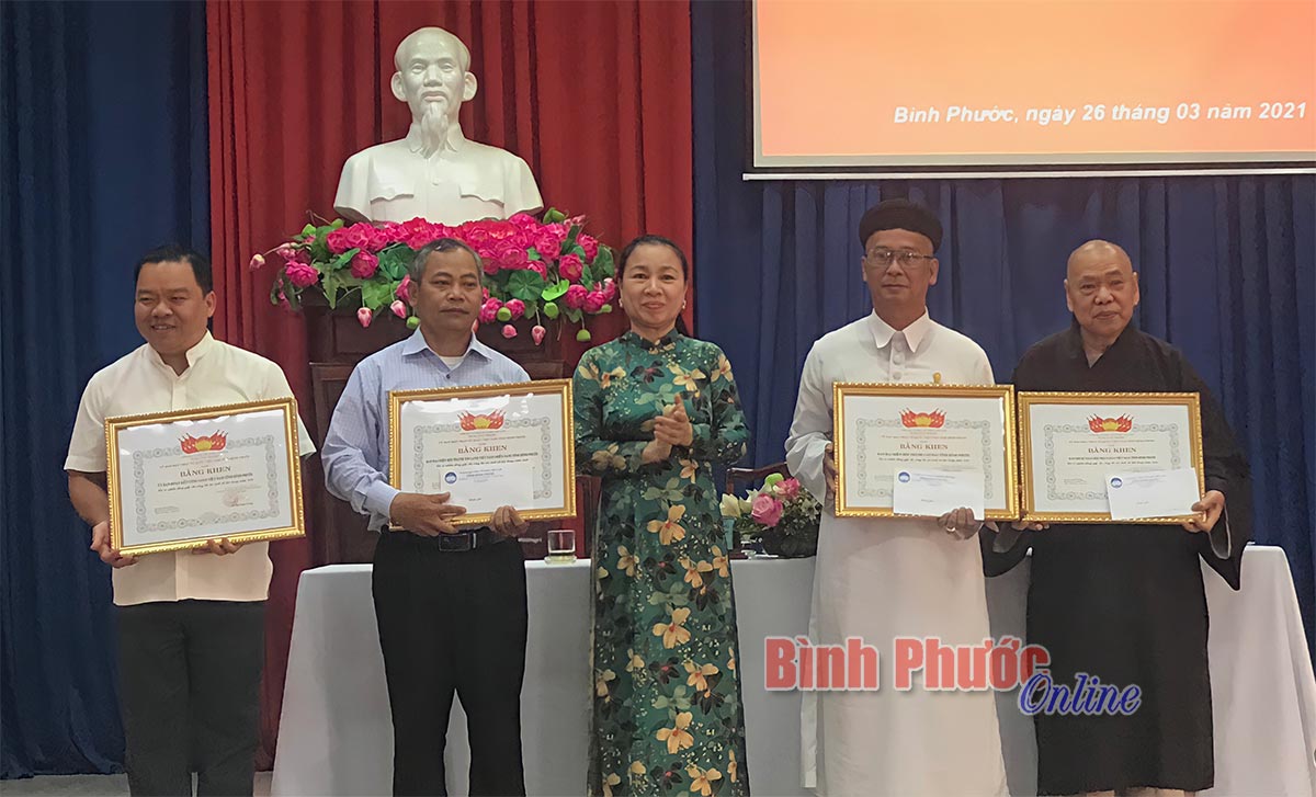 Lãnh đạo tỉnh khen thưởng các chức sắc, chức việc có nhiều đóng góp cho sự phát triển của Bình Phước trong thời gian qua