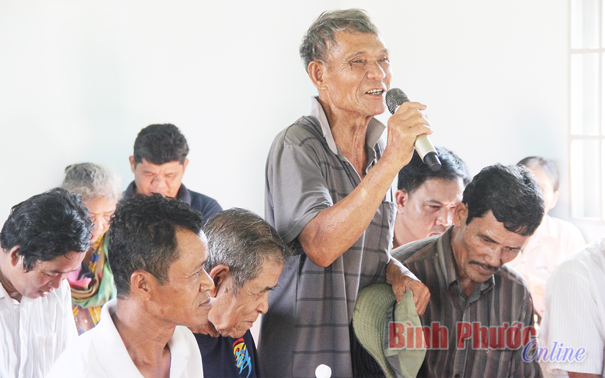Cử tri Điểu A, ấp Tổng Cui Lớn, xã Phước An, huyện Hớn Quản phát biểu ý kiến tại hội nghị