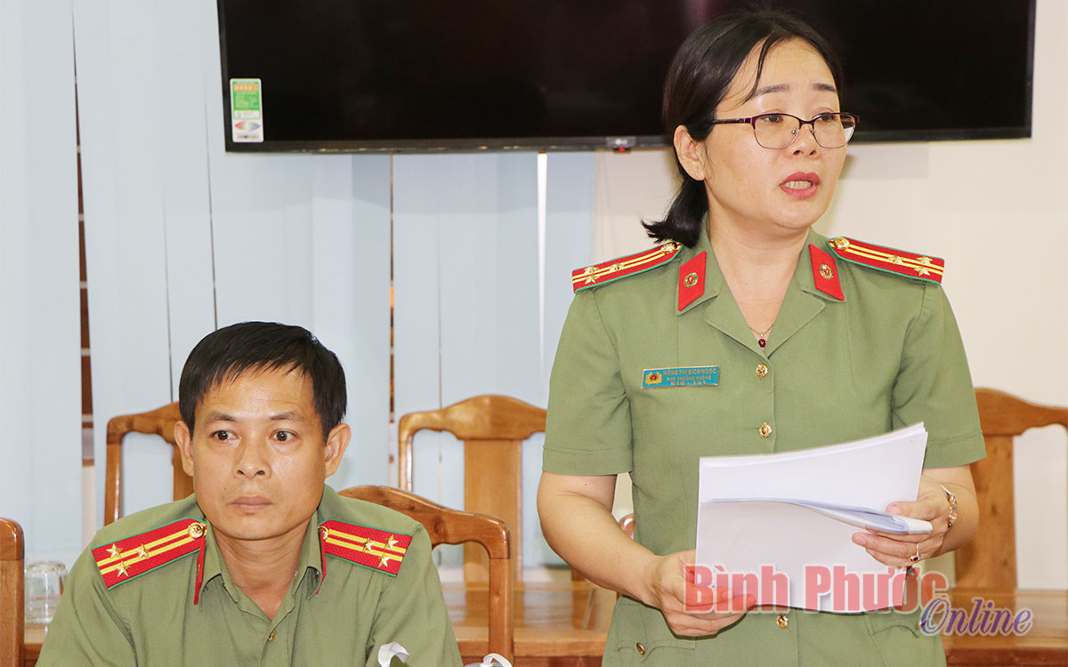 Thượng tá Nông Thị Bích Ngọc, Phó trưởng phòng Tham mưu Công an tỉnh Bình Phước cung cấp các thông tin liên quan cho báo chí