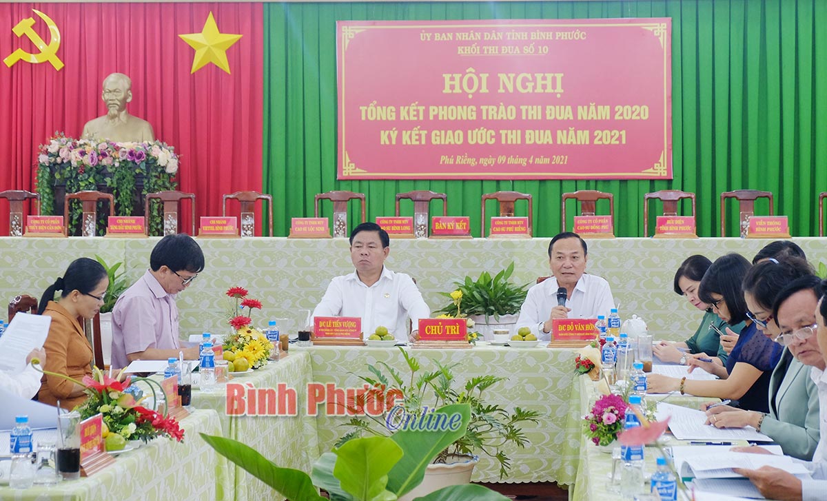 Tại hội nghị, Khối thi đua số 10 đã ký kết giao ước thi đua năm 2021 và thống nhất bàn giao nhiệm vụ khối trưởng năm 2021 cho Công ty TNHH MTV cao su Phú Riềng.