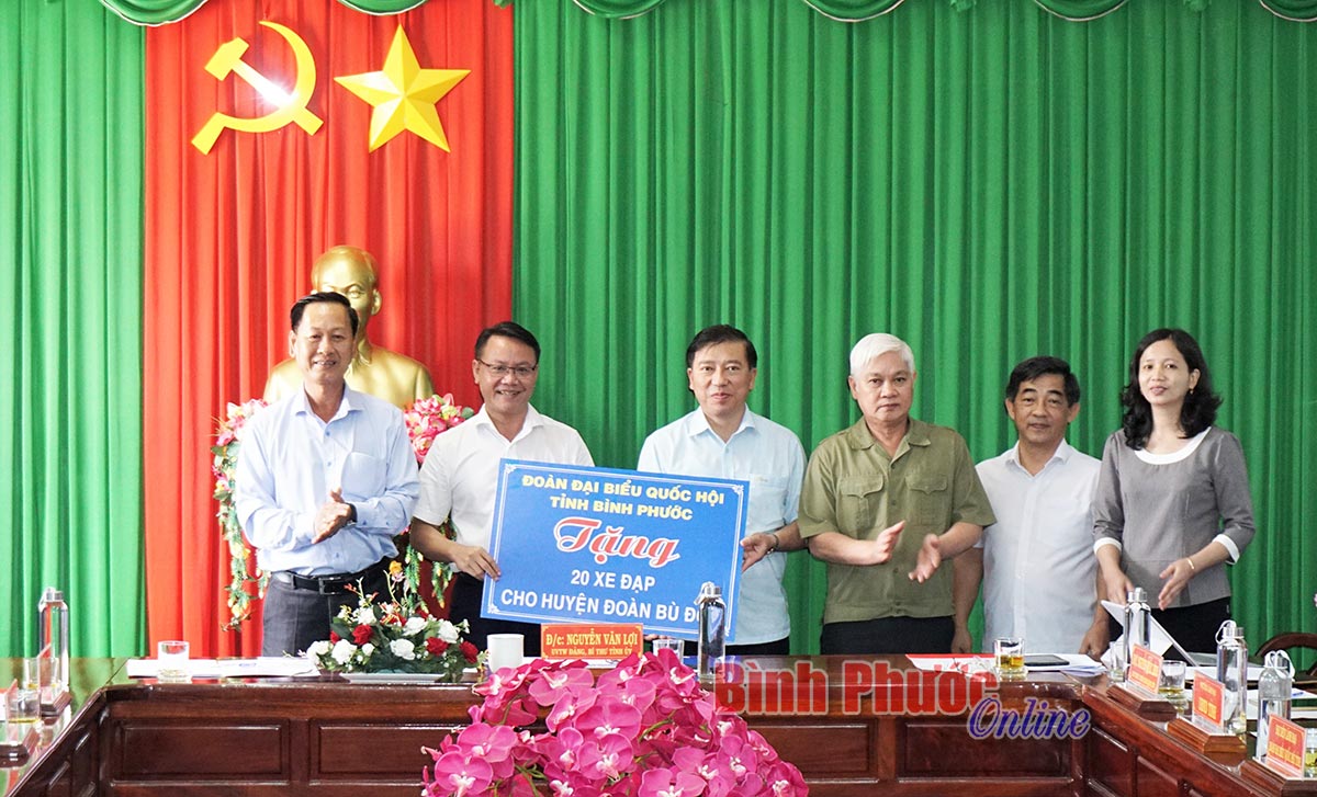 Dịp này, Đoàn đại biểu Quốc hội tỉnh đã trao tặng 100 triệu đồng cho Quỹ khuyến học huyện; các đại biểu Quốc hội tỉnh cũng đã vận động được 20 xe đạp để trao tặng cho các học sinh có hoàn cảnh khó khăn trên địa bàn huyện.