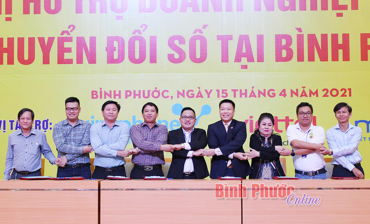 Hội nghị đã chứng kiến lễ ký cam kết giữa 3 doanh nghiệp cung cấp nền tảng chuyển đổi số với 4 doanh nghiệp của tỉnh đăng ký sử dụng nền tảng chuyển đổi số.
