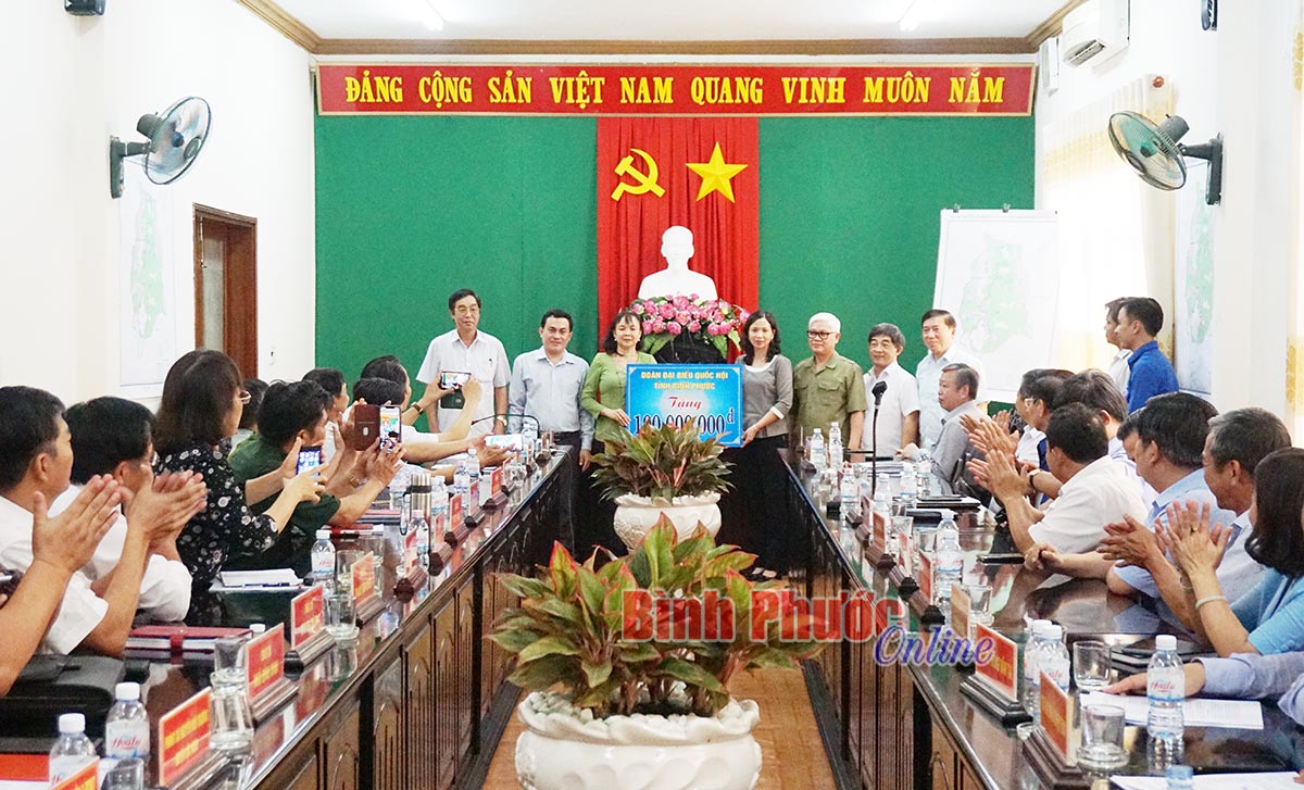 Dịp này, Đoàn đại biểu Quốc hội tỉnh đã trao tặng 100 triệu đồng cho Quỹ khuyến học huyện; các đại biểu Quốc hội tỉnh cũng đã vận động được 20 xe đạp trao tặng các em học sinh có hoàn cảnh khó khăn trên địa bàn huyện Lộc Ninh.