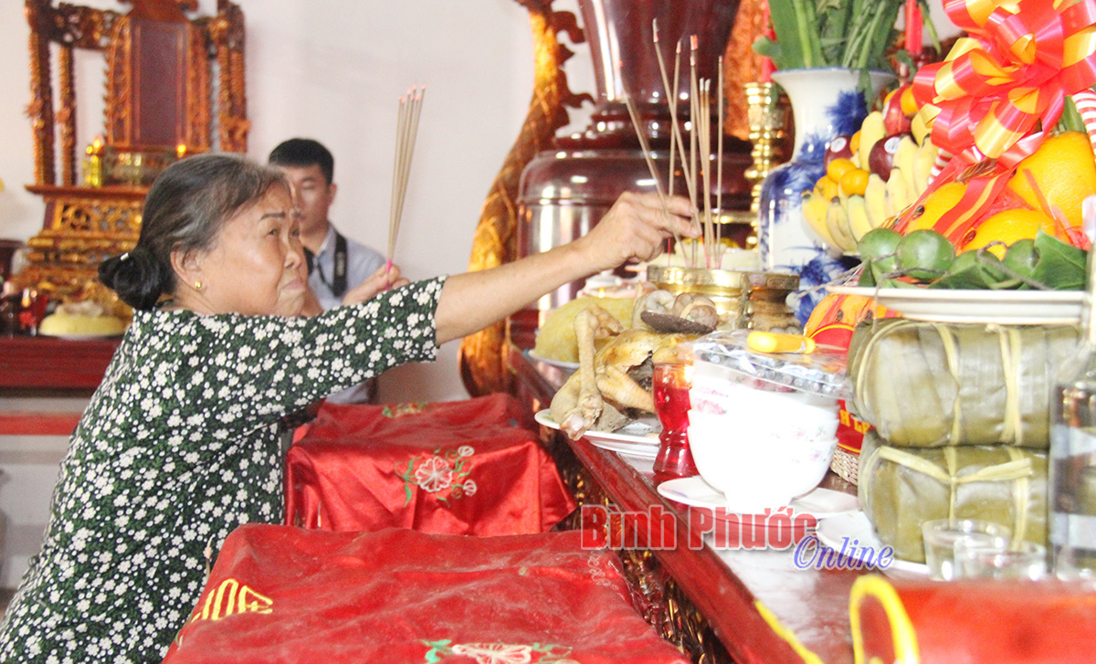 Người dân thắp nhang lên bàn thờ các Vua Hùng tại Đền thờ Vua Hùng, xã Phú Riềng, huyện Phú Riềng