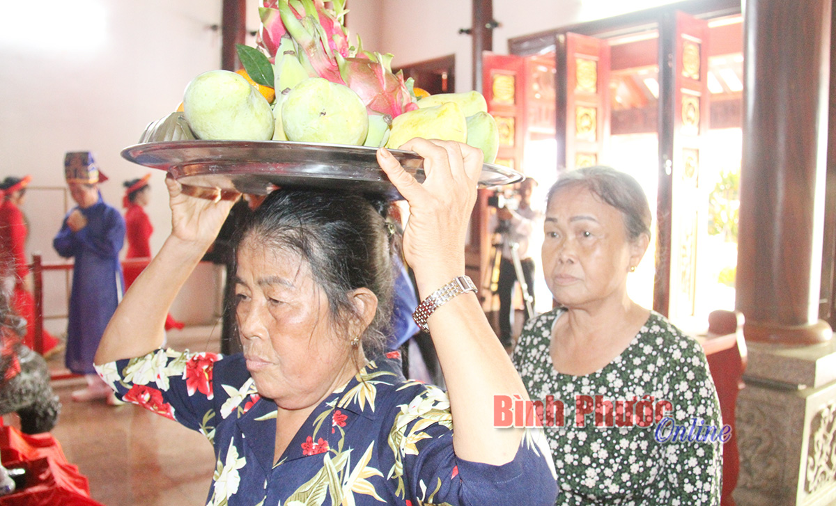Người dân xã Phú Riềng dâng lễ vật lên các vị Vua Hùng nhân ngày giỗ tổ