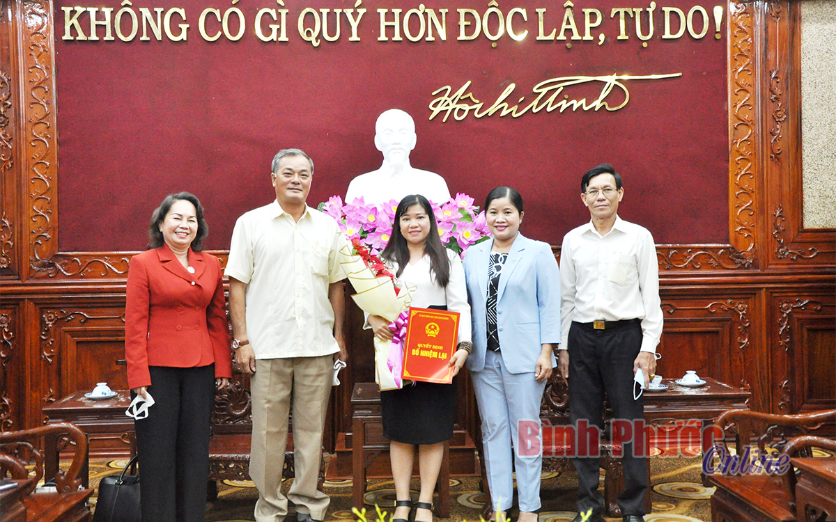 Lãnh đạo tỉnh trao quyết định bổ nhiệm và tặng hoa chúc mừng Phó giám đốc Sở Lao động - Thương binh và Xã hội Phạm Thị Mai Hương