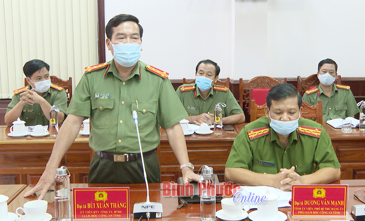 Đại tá Bùi Xuân Thắng, Giám đốc Công an tỉnh báo cáo nhanh tình hình an ninh trật tự và công tác phòng chống Covid-19 trên địa bàn tỉnh thời gian qua