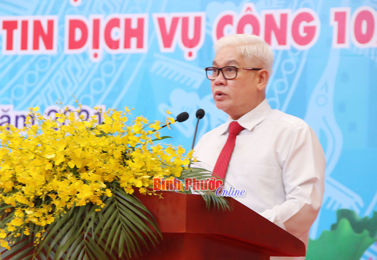 “Bình Phước đang và sẽ thực hiện đồng bộ nhiều giải pháp thiết thực, hiệu quả hơn nữa để xây dựng chính quyền kiến tạo, lấy người dân làm trung tâm, lấy sự hài lòng của người dân và doanh nghiệp là thước đo chất lượng hoạt động của bộ máy hành chính trong tỉnh. Phải thực hiện cho được “hai không” gồm: nộp hồ sơ và trả kết quả không gặp mặt và thanh toán nghĩa vụ tài chính không dùng tiền mặt”. |