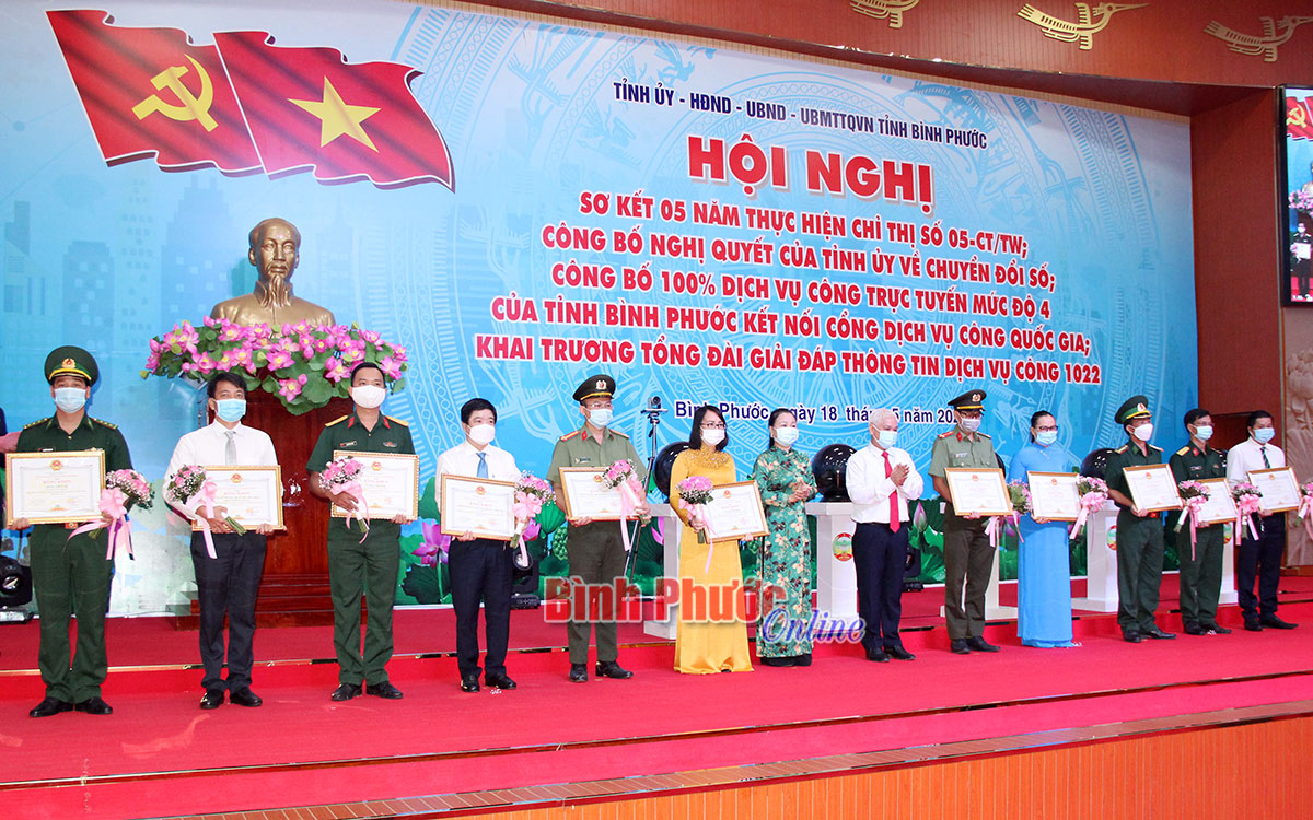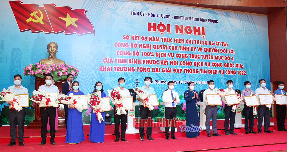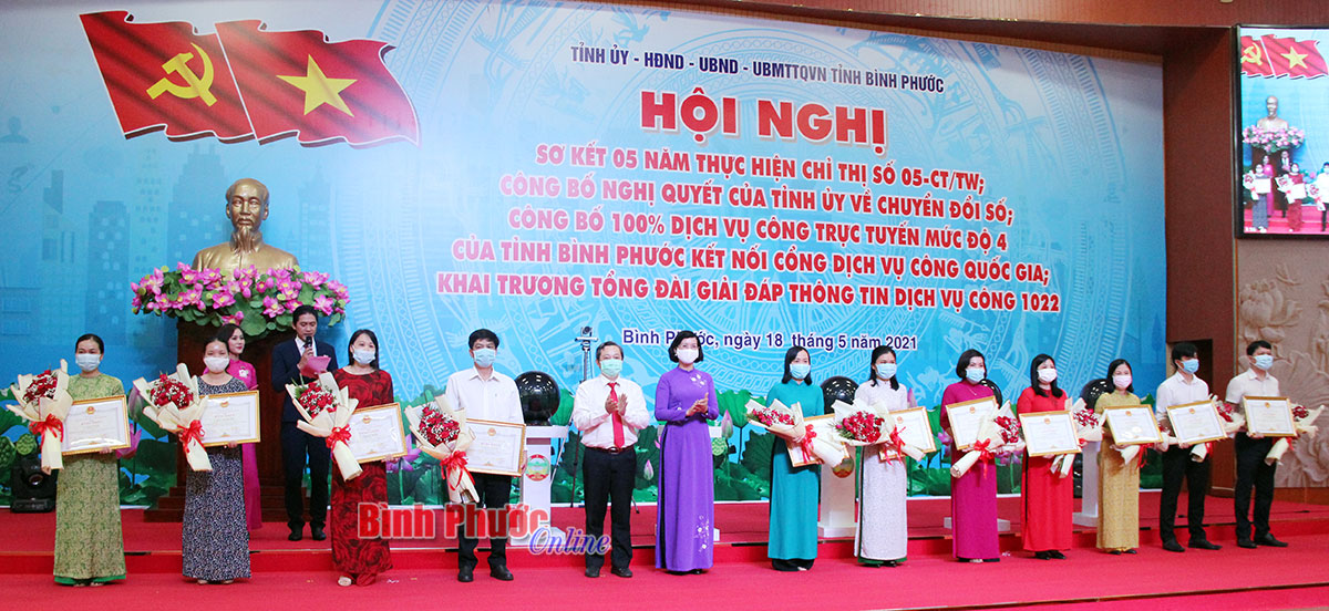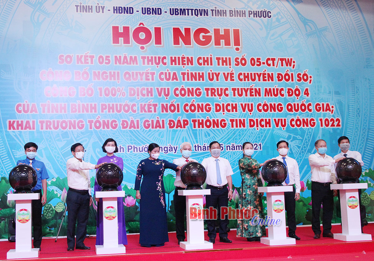 Sáng nay 18-5, Tỉnh ủy, HĐND, UBND, Ủy ban MTTQ Việt Nam tỉnh tổ chức hội nghị trực tuyến toàn tỉnh sơ kết 5 năm thực hiện Chỉ thị số 05-CT/TW của Bộ Chính trị; công bố Nghị quyết của Tỉnh ủy về chuyển đổi số; công bố 100% dịch vụ công trực tuyến mức độ 4 của tỉnh kết nối với Cổng dịch vụ công quốc gia, đồng thời khai trương tổng đài giải đáp thông tin dịch vụ công 1022.