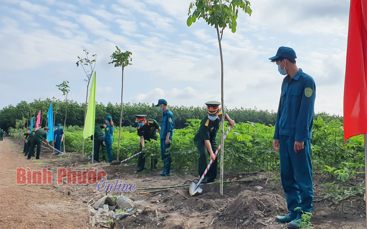 Ngay sau lễ phát động, các đại biểu đã trồng hàng chục cây gõ đỏ tại khu đất sản xuất tập trung của Bộ chỉ huy Quân sự tỉnh.