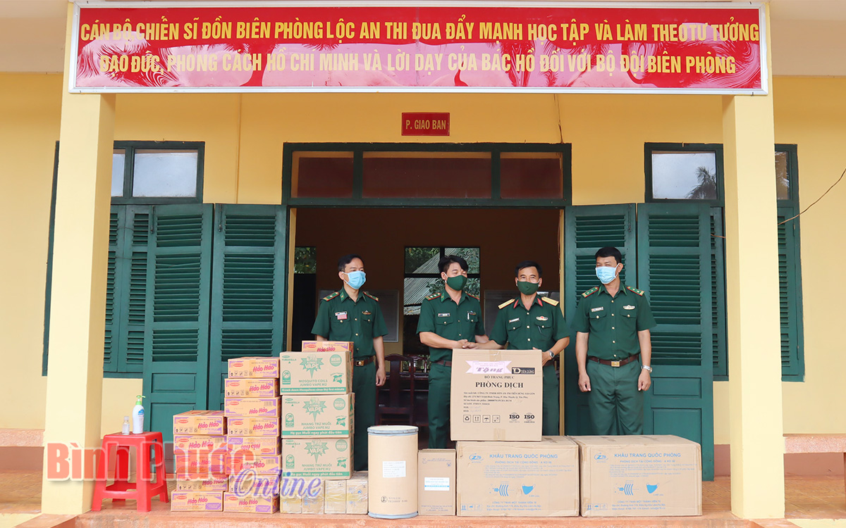 Tại đây, thay mặt lãnh đạo thành phố, Ban chỉ huy Quân sự thành phố Đồng Xoài đã thăm hỏi, động viên cán bộ, chiến sĩ Đồn biên phòng Lộc An trong công tác phòng chống dịch nơi tuyến biên giới. Đồng thời trao các nhu yếu phẩm hỗ trợ gồm: 10 ngàn chiếc khẩu trang, 35 bộ quần áo bảo hộ, nước rửa tay sát khuẩn, cloramin B khử khuẩn, nhang muỗi và mì tôm. Các nhu yếu phầm này sẽ giúp lực lượng làm nhiệm vụ trực gác tại tổ chốt kiểm soát của Đồn biên phòng Lộc An có thêm điều kiện trong công tác phòng, chống dịch.