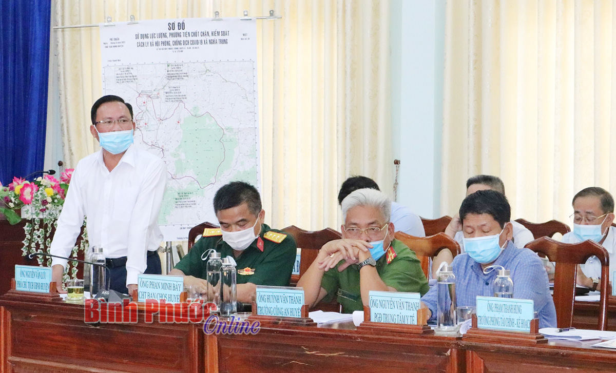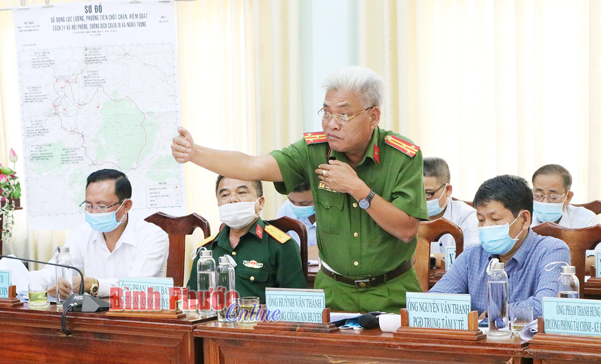 Trưởng công an huyện Bù Đăng Huỳnh Văn Thành trình bày các phương án phong tỏa cách ly