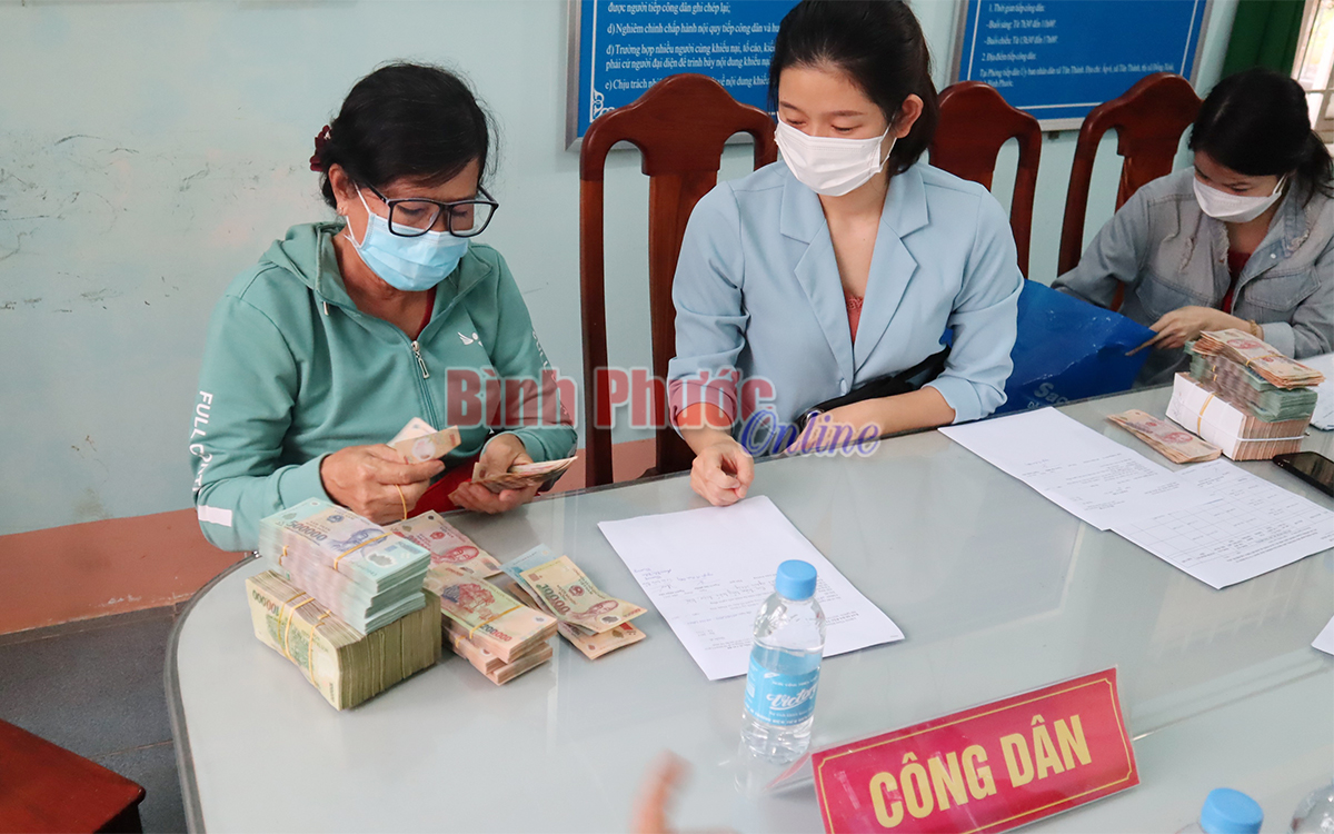 Hộ ông Trần Văn Lượm, ấp 8, xã Tân Thành nhận 423 triệu đồng tiền chi trả tạm ứng tiền bồi thường