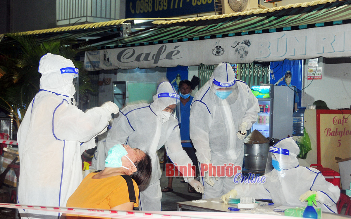 Lấy mẫu xét nghiệm Covid-19 cho người dân ở ấp 3, xã Minh Thành, huyện Chơn Thành - nơi xuất hiện ca dương tính thứ 8