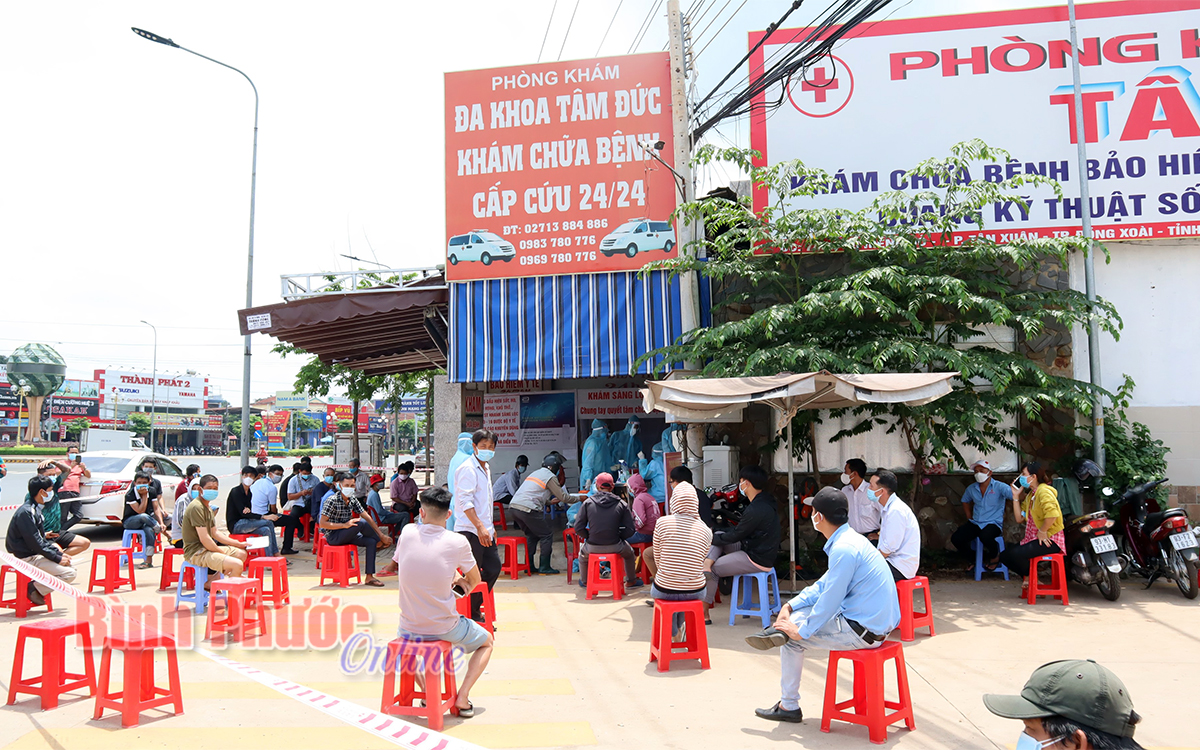 Ngày 12-7, sau 3 lần bà N.T.L đi khám, test nhanh tại Phòng khám đa khoa Tâm Đức và cho kết quả dương tính với SARS-CoV-2, Ban chỉ đạo phòng, chống Covid-19 TP. Đồng Xoài đã chủ động thực hiện các biện pháp ứng phó. Trong đó, tiến hành khoanh vùng toàn bộ Phòng khám đa khoa Tâm Đức, đồng thời triển khai các bước phòng, chống dịch theo quy trình.