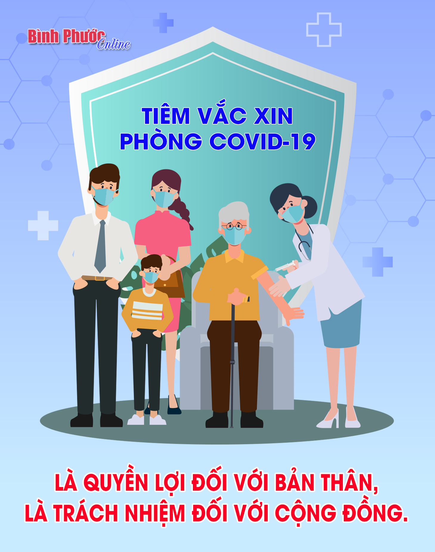 Chiến dịch tiêm vắc xin phòng Covid-19 mũi 1, đợt 6 trên địa bàn tỉnh Bình Phước sẽ đảm bảo đạt 100% đối tượng được tiêm chủng vắc xin phòng Covid-19 theo chỉ tiêu được giao.