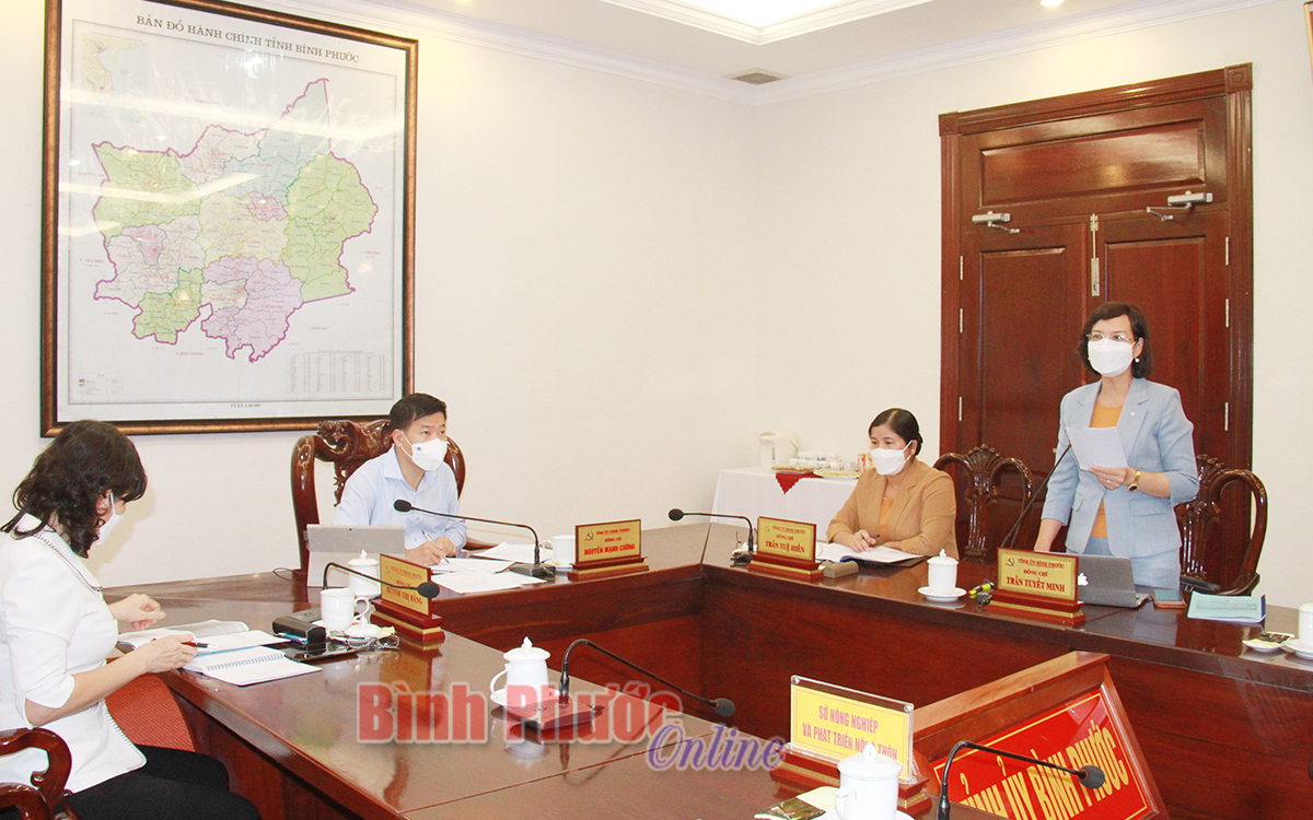 Ủy viên Ban Thường vụ Tỉnh ủy, Phó chủ tịch UBND tỉnh Trần Tuyết Minh phát biểu thảo luận tại buổi làm việc