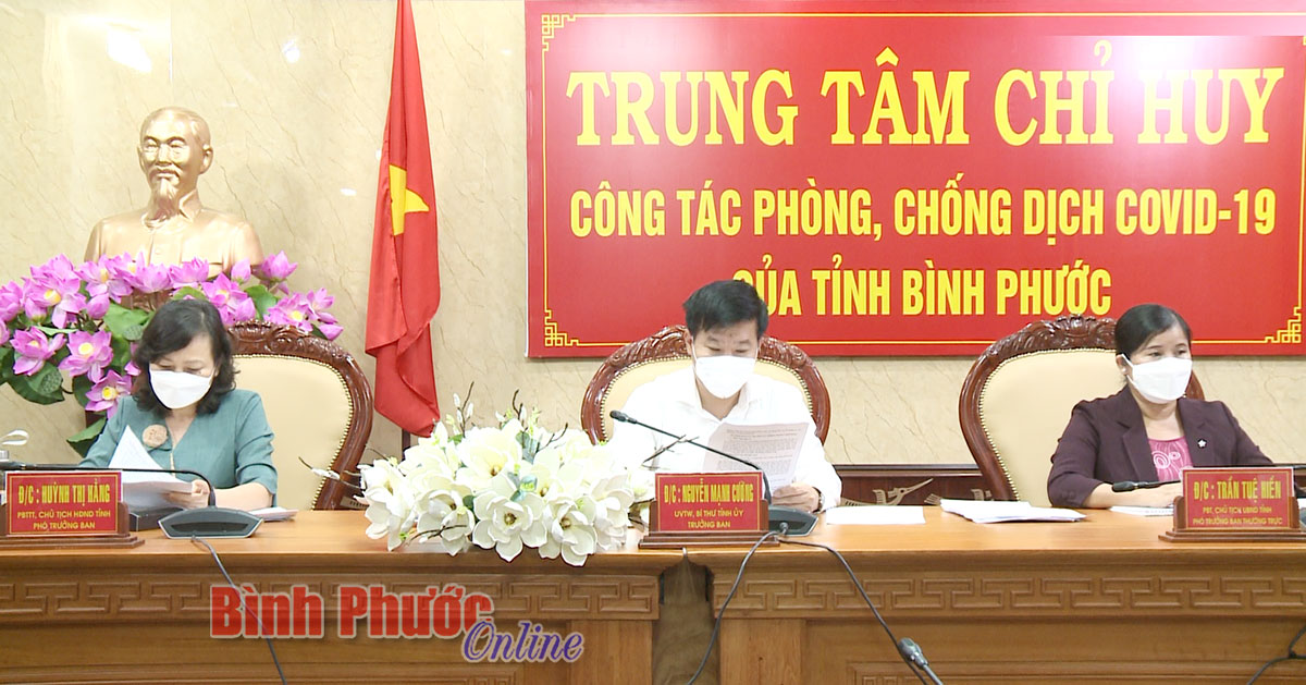 Tuy nhiên, theo nhận định hiện tình hình dịch Covid-19 vẫn còn diễn biến phức tạp, một số ổ dịch tại 2 huyện Chơn Thành và Đồng Phú vẫn chưa xác định được nguồn lây. Do đó, các địa phương, đơn vị cần phải tăng cường, kiểm soát, đặc biệt là kiểm soát chặt chẽ các nguồn lây từ bên ngoài nhằm hạn chế tối đa dịch bệnh xâm nhập vào địa bàn tỉnh.