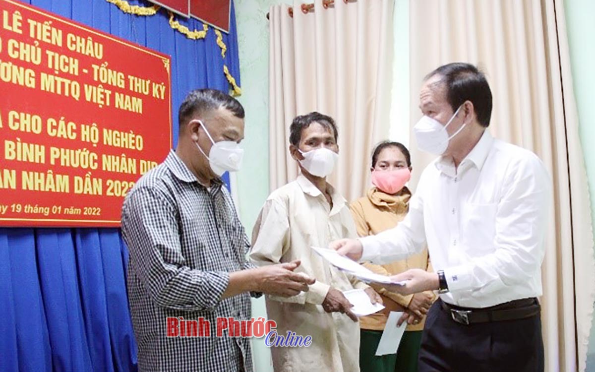 Ông Lê Tiến Châu, Ủy viên Trung ương Đảng, Phó chủ tịch, Tổng thư ký Ủy ban Trung ương MTTQ Việt Nam tặng quà người nghèo tỉnh Bình Phước