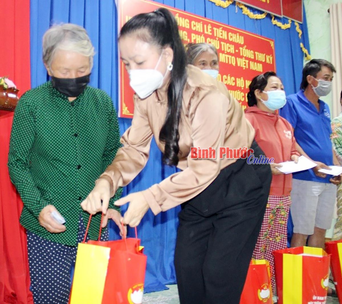 Dịp này, đoàn đã tặng người nghèo trong tỉnh 100 phần quà gồm dầu ăn, nước mắm, đường, sữa, bánh và 1 triệu đồng tiền mặt. Tổng trị giá các phần quà 120 triệu đồng. Tại Ủy ban MTTQ Việt Nam tỉnh, đoàn đã trao trực tiếp cho 20 hộ nghèo, cận nghèo, đối tượng bảo trợ xã hội. Số còn lại sẽ bàn giao cho Ủy ban MTTQ Việt Nam thành phố Đồng Xoài để bảo đảm người nghèo, cận nghèo, đối tượng bảo trợ xã hội và những trường hợp đặc biệt khác trên địa bàn thành phố, với mục tiêu, tất cả người dân đều có tết đầm ấm, an vui.