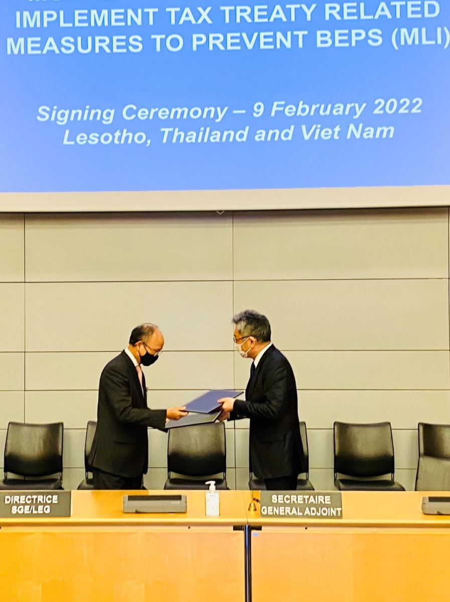 Theo phóng viên TTXVN tại Pháp, ngày 9/2 tại trụ sở Tổ chức Hợp tác và Phát triển Kinh tế (OECD) ở Paris, được sự ủy quyền của Bộ trưởng Ngoại giao Bùi Thanh Sơn, Đại sứ Việt Nam tại Pháp Đinh Toàn Thắng đã thay mặt nước Cộng hòa xã hội chủ nghĩa Việt Nam ký Công ước MLI, còn được gọi là Công cụ đa phương, bao trùm hơn 1.800 hiệp định thuế song phương.