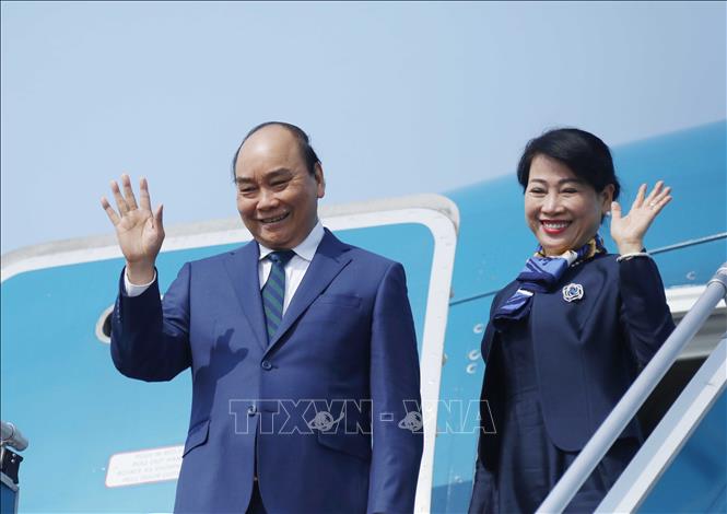 Chủ tịch nước Nguyễn Xuân Phúc và Phu nhân lên đường thăm cấp Nhà nước tới Cộng hoà Singapore. Ảnh: Thống Nhất (TTXVN)