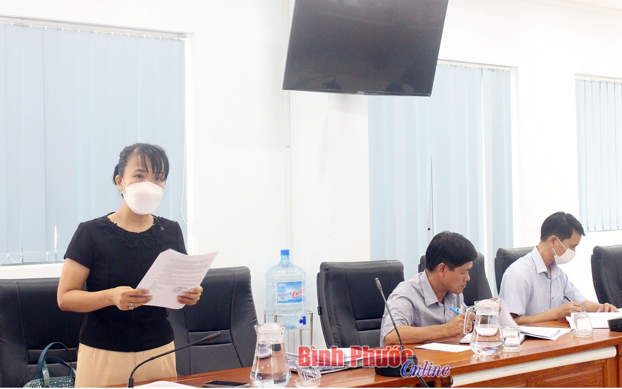 Lãnh đạo các phòng, ban huyện Phú Riềng giải trình làm rõ một số vấn đề tại buổi giám sát