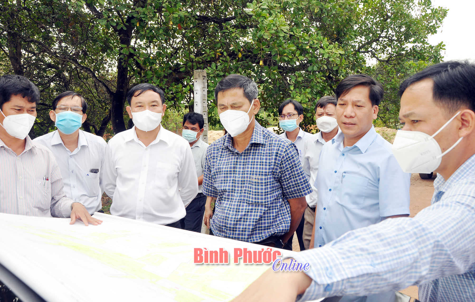 Các thành viên đoàn giám sát của Ban Kinh tế - Ngân sách HĐND tỉnh giám sát thực tế một số danh mục dự án trên địa bàn huyện Đồng Phú