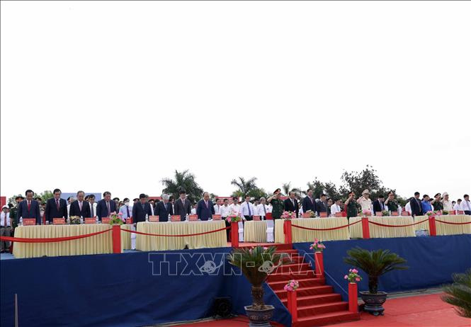 Chủ tịch nước Nguyễn Xuân Phúc và các đại biểu mặc niệm tưởng nhớ các anh hùng liệt sỹ, đồng bào đồng chí và chiến sỹ đã hy sinh. Ảnh: Thống Nhất/TTXVN
