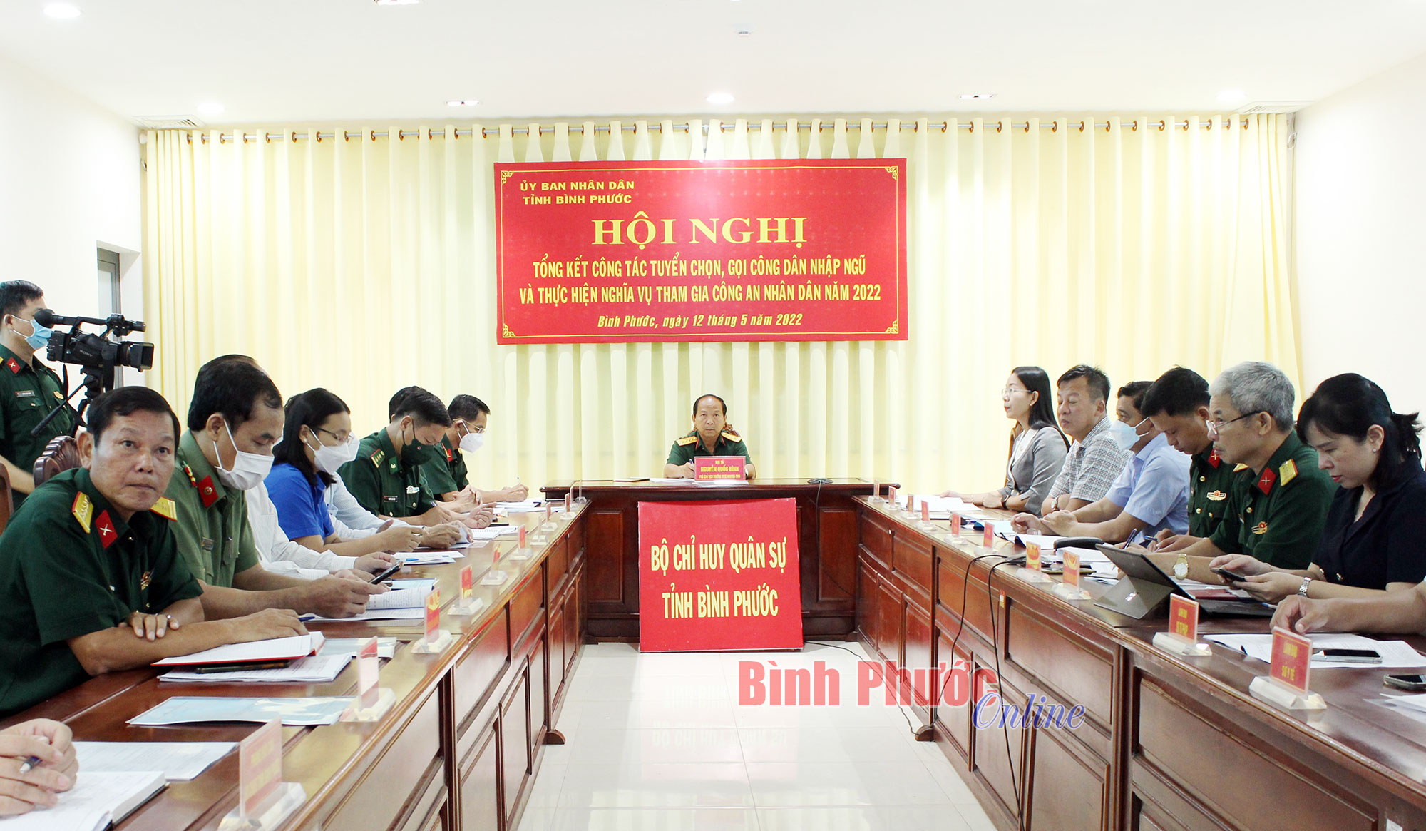 Báo cáo tại hội nghị nêu rõ, công tác tuyển chọn, gọi công dân nhập ngũ năm 2022 luôn được sự quan tâm lãnh đạo, chỉ đạo sâu sát của cấp ủy, chính quyền các cấp. Hội đồng Nghĩa vụ quân sự các cấp đã chỉ đạo tổ chức thực hiện trình tự các bước tuyển quân như: tổ chức nắm nguồn, đăng ký, tiến hành xét duyệt chính trị, chính sách cho công dân đủ điều kiện nhập ngũ, đảm bảo cho công tác tuyển chọn, gọi công dân nhập ngũ đúng tiến độ, thời gian quy định.
