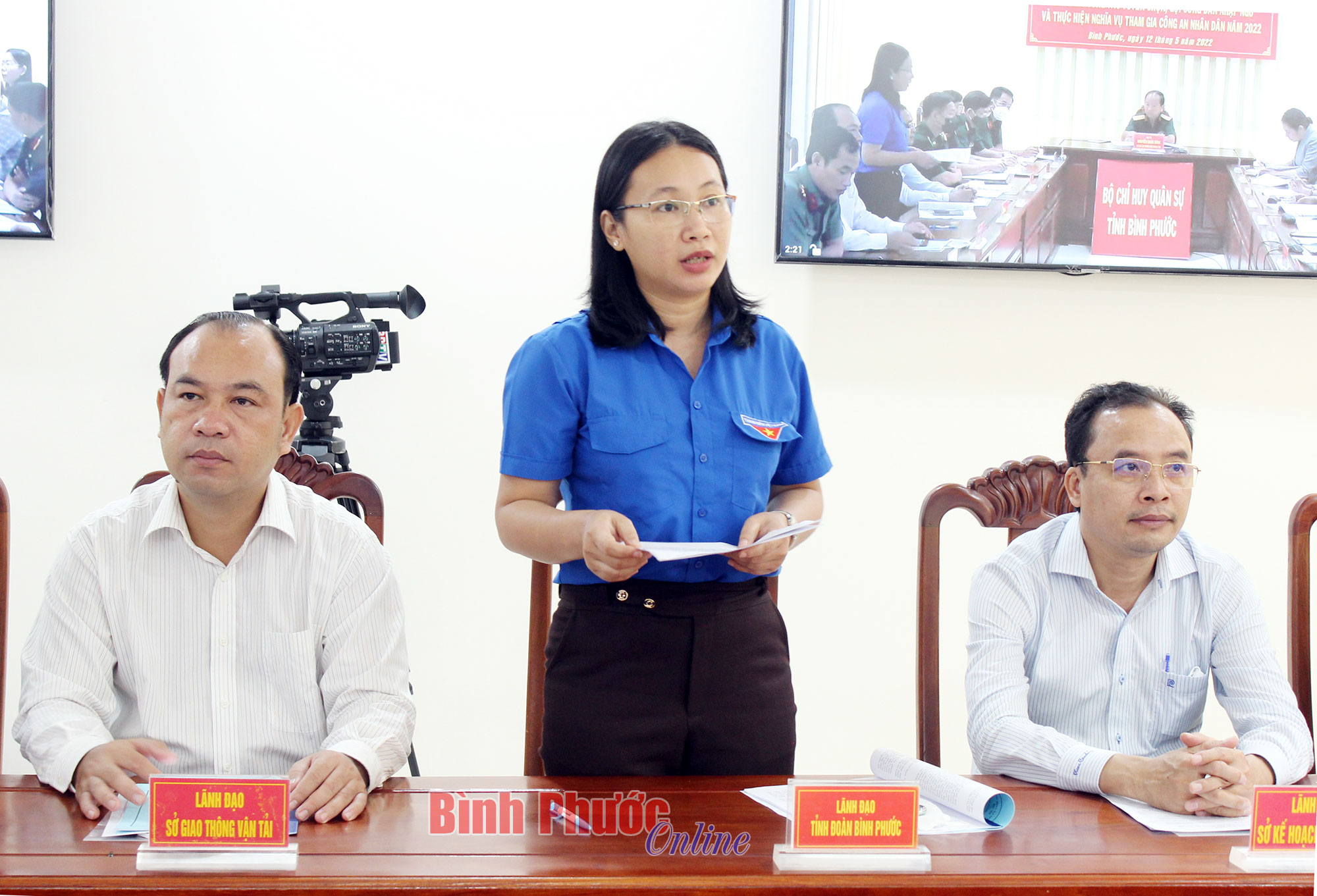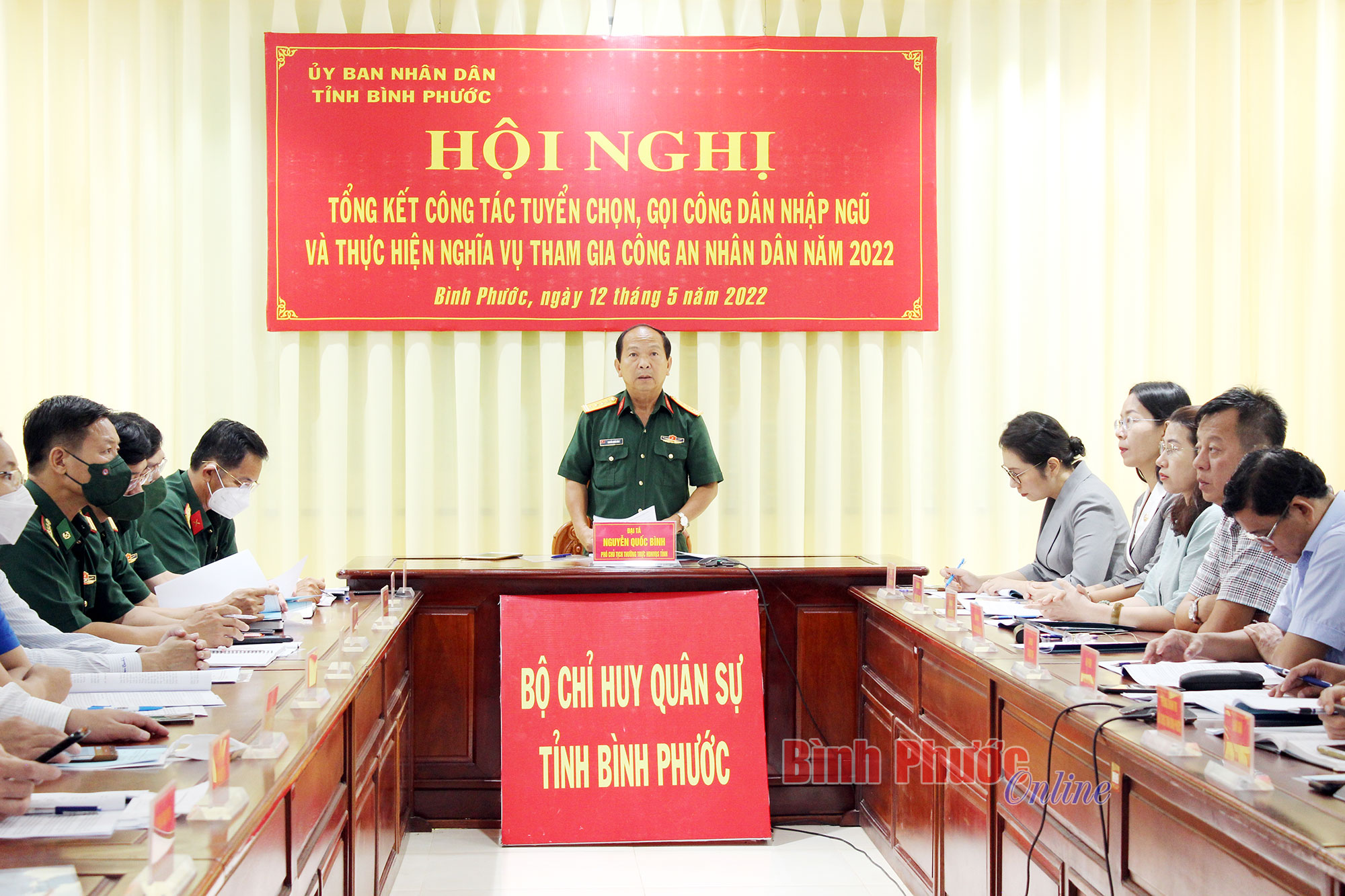 Đại tá Nguyễn Quốc Bình, Ủy viên Ban Thường vụ Tỉnh ủy, Chỉ huy trưởng Bộ CHQS tỉnh, Phó chủ tịch Thường trực Hội đồng Nghĩa vụ quân sự tỉnh đề nghị các huyện, thị, thành phố cần làm tốt công tác chuẩn bị nguồn, thực hiện đúng các bước trong tuyển chọn, gọi công dân nhập ngũ năm 2023